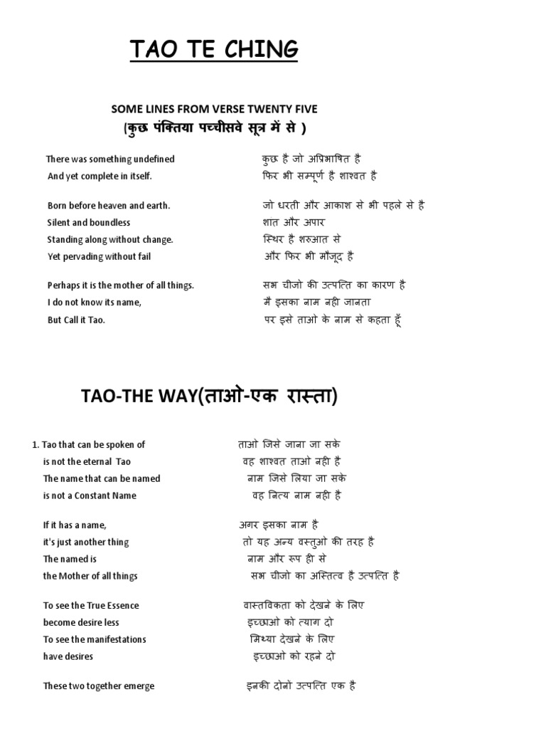 Tao Te Ching Englist Hindi Translation Pdf